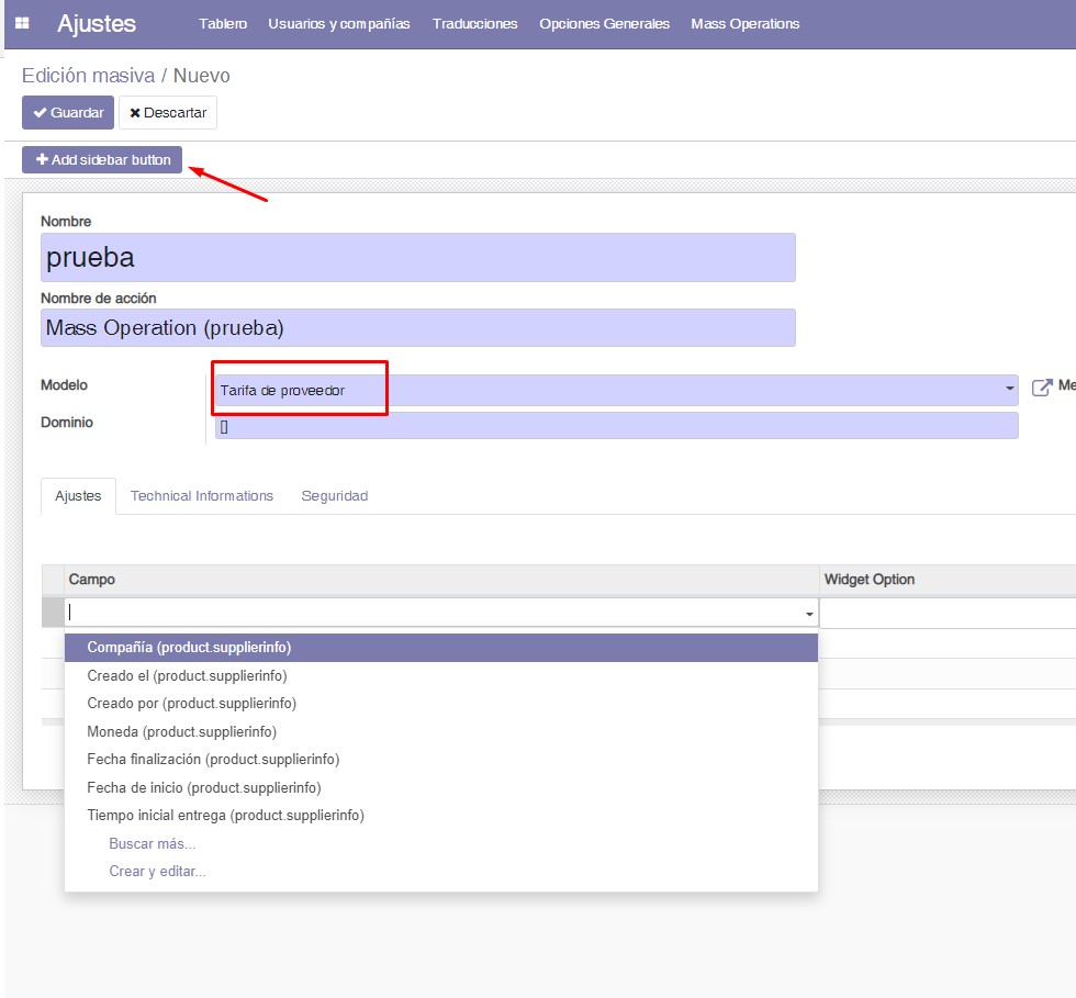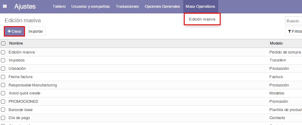 Vamos a crear un mass operation. La ruta es la siguiente: