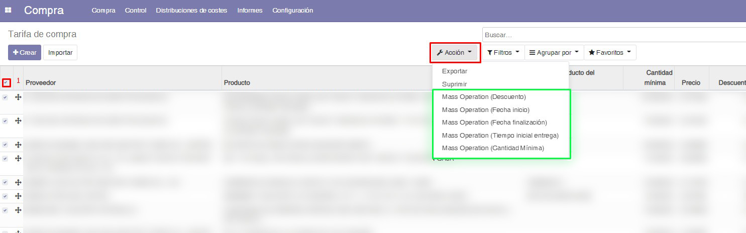 Para elegir los mass operation, deberemos seleccionar del listado mostrado unos cuantos para que se nos abra la ventana marcada.