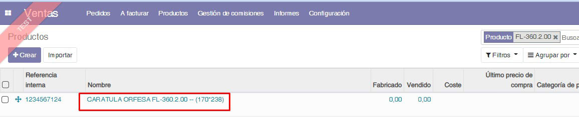 Acto seguido buscamos la referencia de la caratula que hemos impreso, que coincide con la del producto, pero poniendo como nombre CARATULA.
