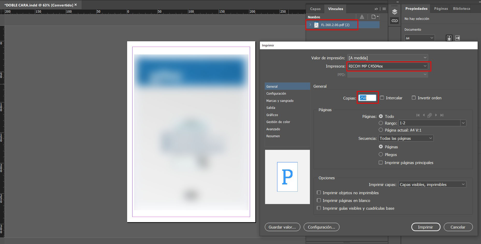 Ahora ya nos cuadra el archivo enlazado y se nos actualizará automáticamente en el documento. Le damos a imprimir escogiendo la impresora que toca, y asegurando la doble cara y escogiendo el número de copias que queremos*.