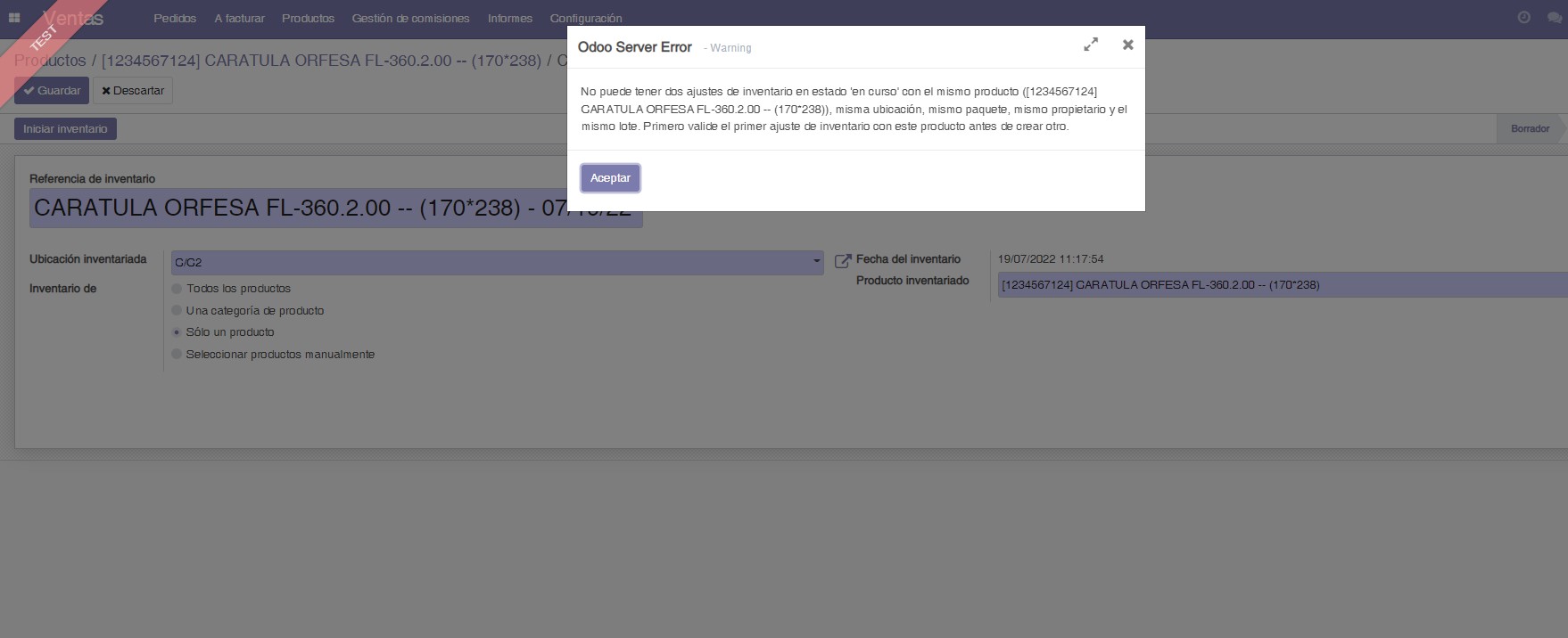Para solucionar esto debemos ir a INVENTARIO<AJUSTES DE INVENTARIO