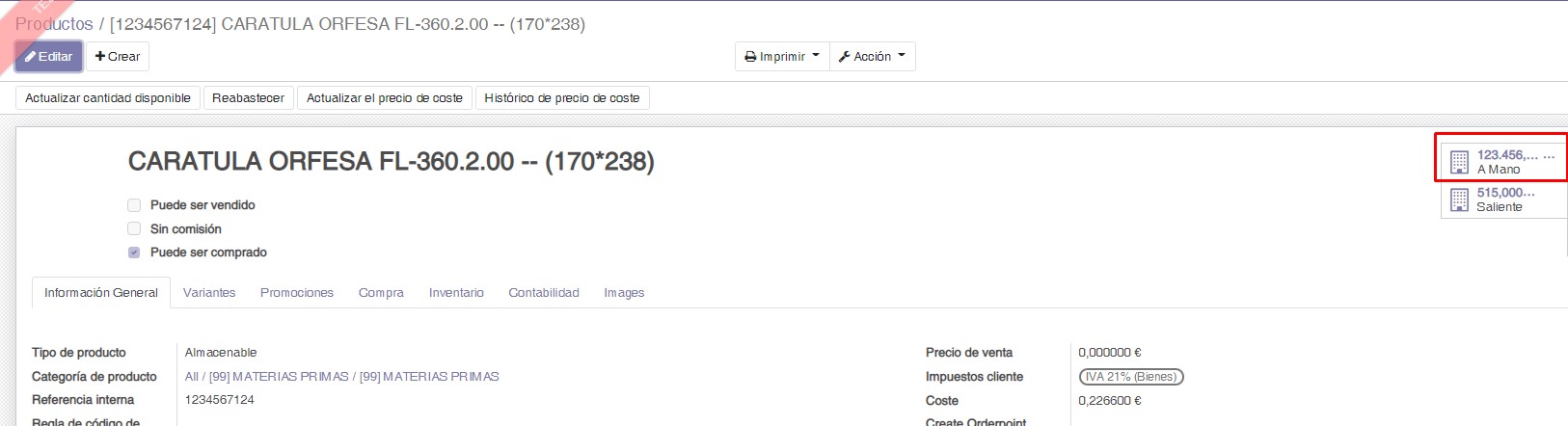 Podemos ver que ya se reflejan esas cantidades en el stock a mano.